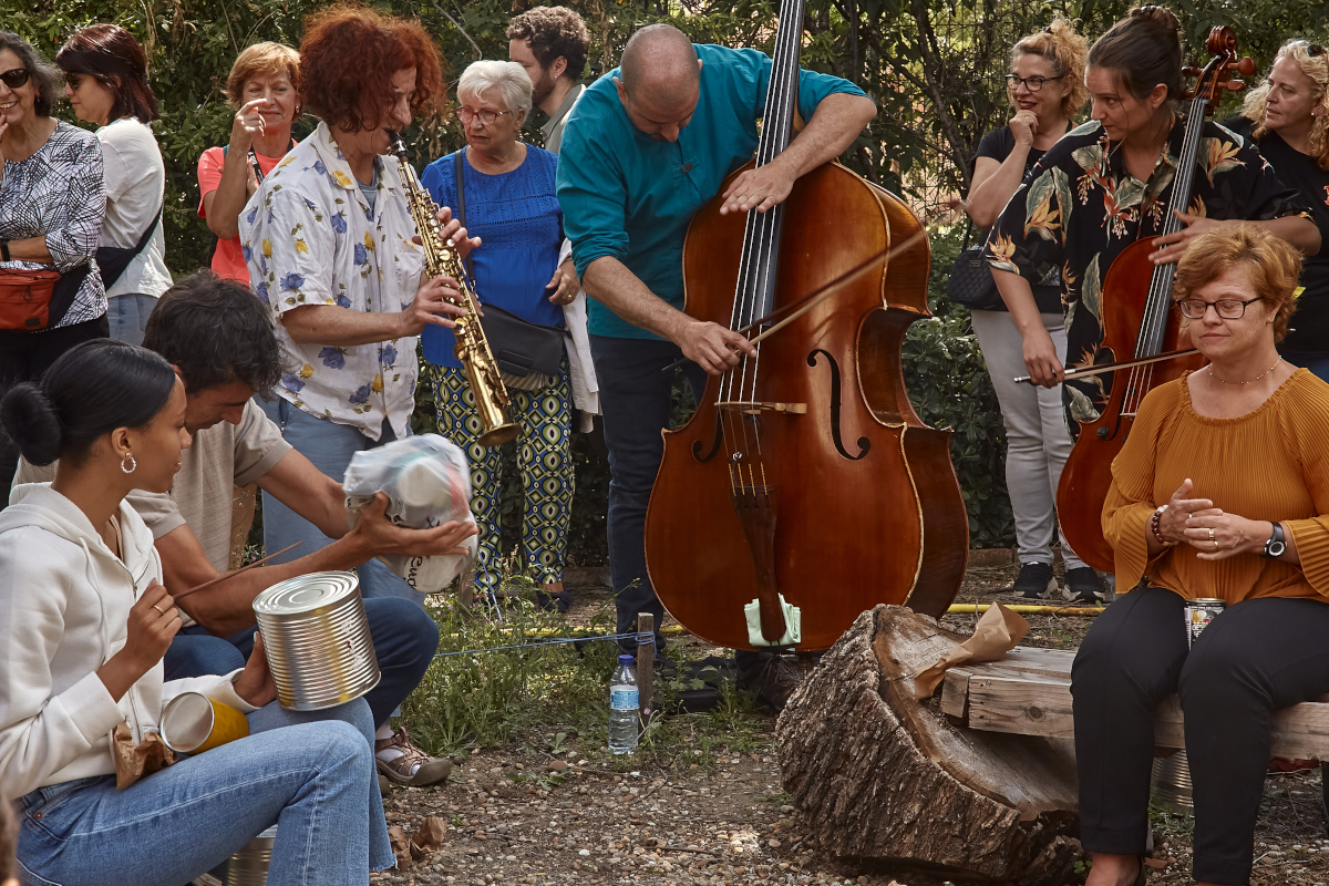 “Sonidos desde el Tecer Paisaje” fue la primera actividad dek festival, un concierto de música improvisada en los jardines de la Biblioteca María Moliner, donde en el 2022 plantamos con la ayuda de una comunidad de aprendizaje, y la colaboración del paisajista Ramón Gómez, nuestro primer jardín zass.